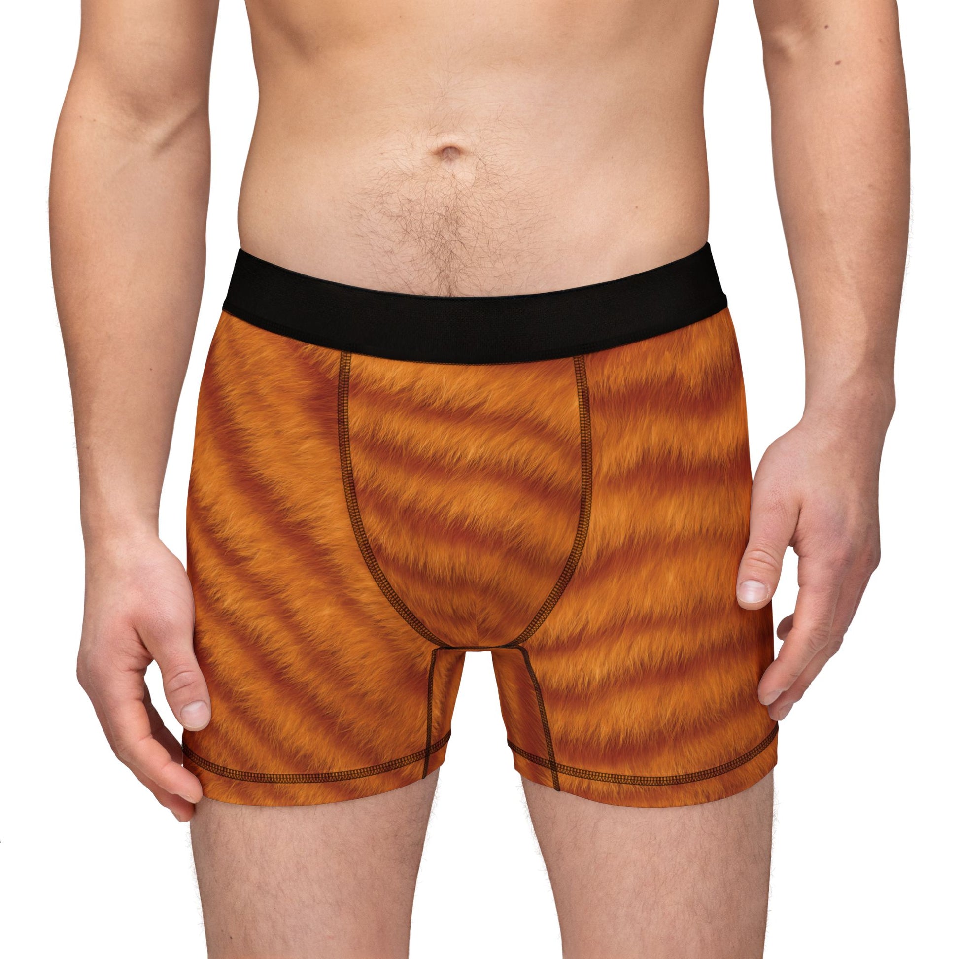 Orange Cat Fur Print Men's Boxers, Ginger Cat Boxers, Stylish Underwear, Tabby Cat Underwear, Unique Gift for Him, Cat Novelty Boxer Briefs