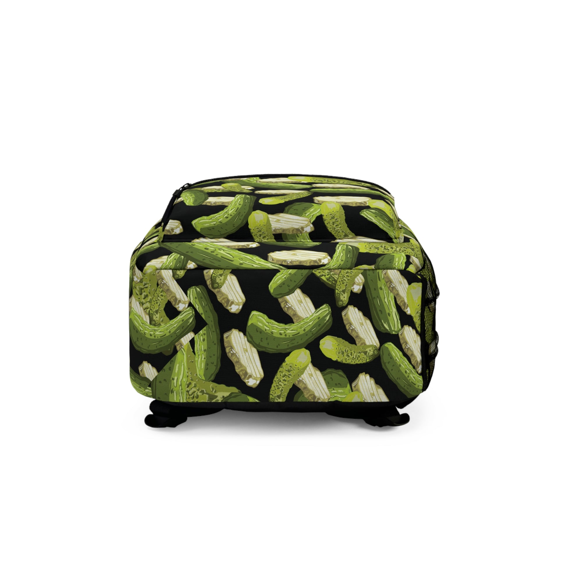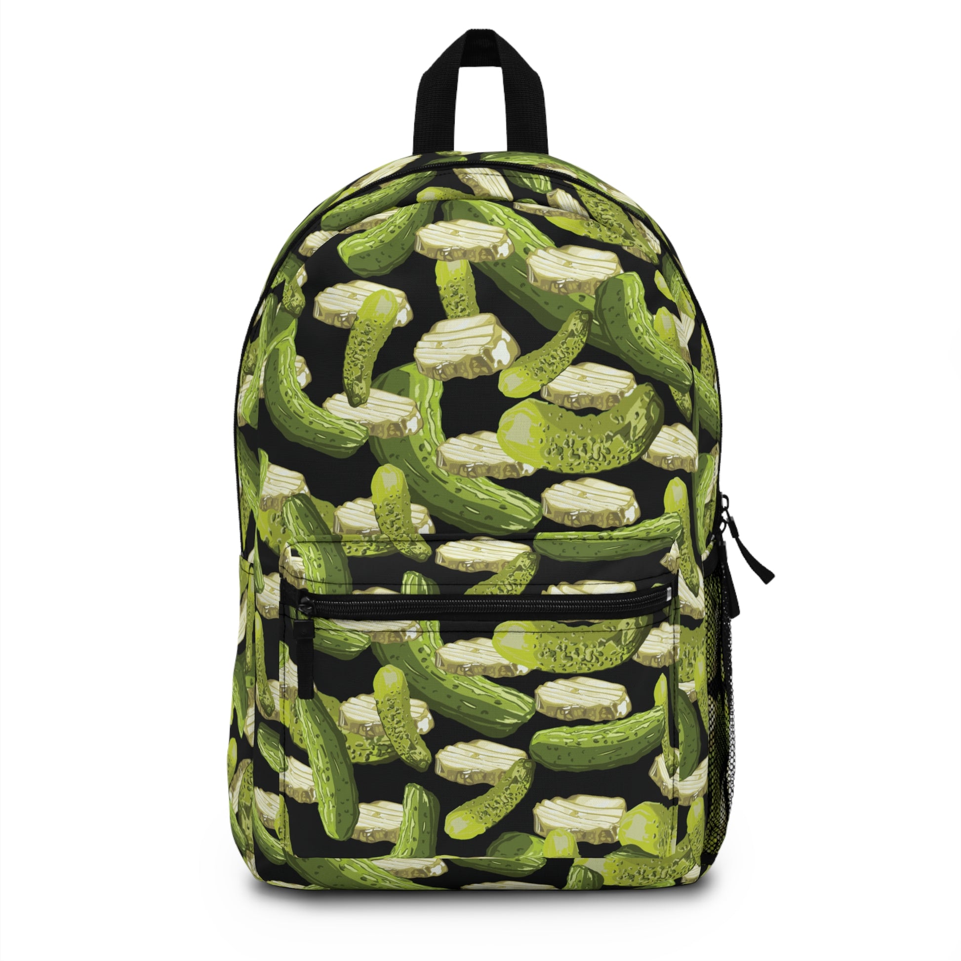 A trendy and functional backpack featuring a quirky pickle pattern. This backpack is perfect for students, hikers, and travelers who want to add some fun to their daily routine. It is ideal for back-to-school season, hiking trips, and everyday use.