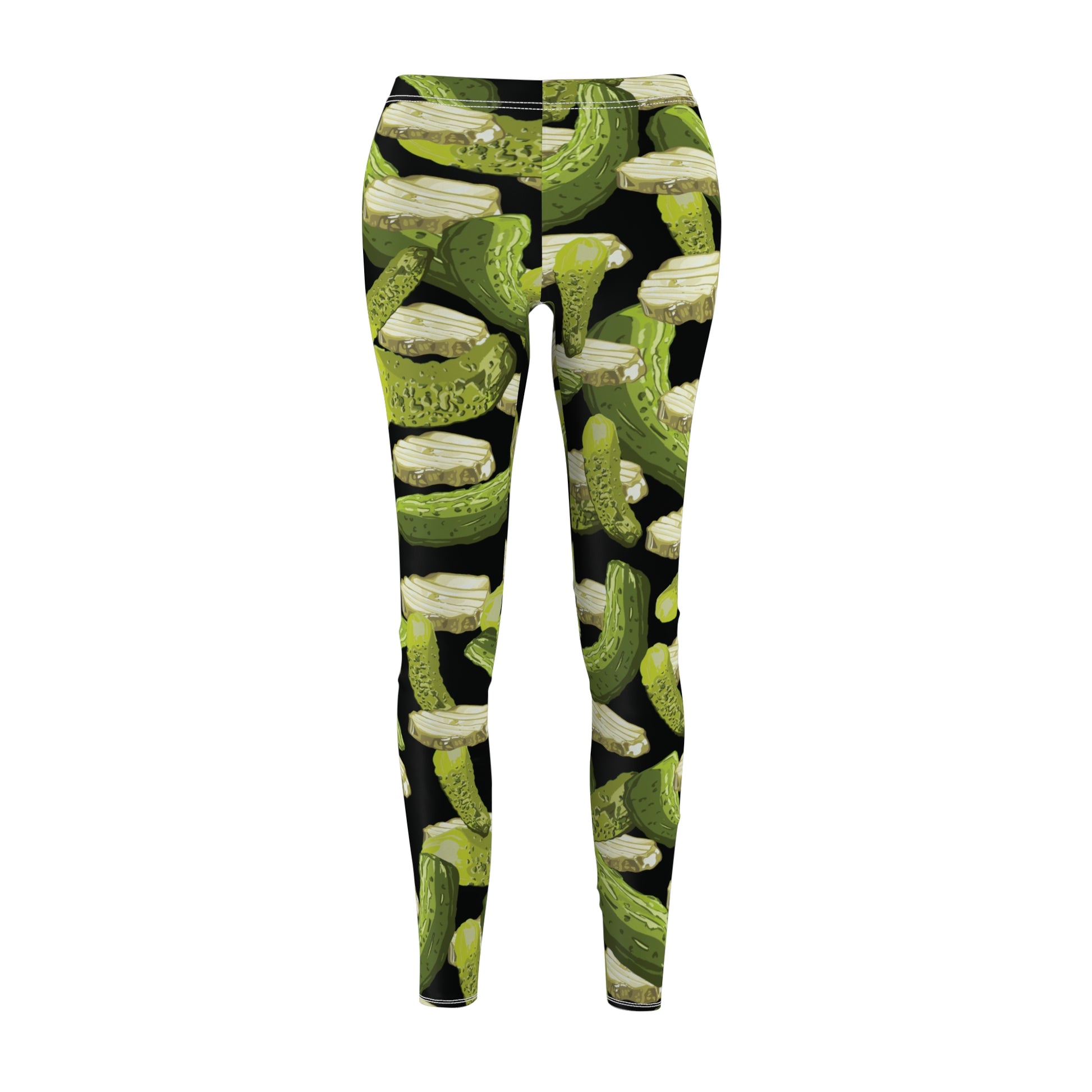 These leggings are covered in large pickles all over, giving them a quirky and fun vibe. Perfect for pickle lovers or anyone looking to make a bold statement with their outfit. Ideal for active wear, casual wear or as a conversation starter during parties or gatherings. Relevant for pickle-themed events or quirky celebrations.