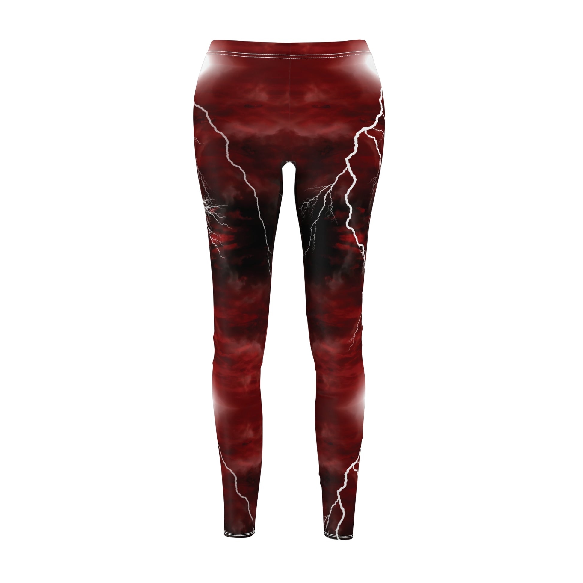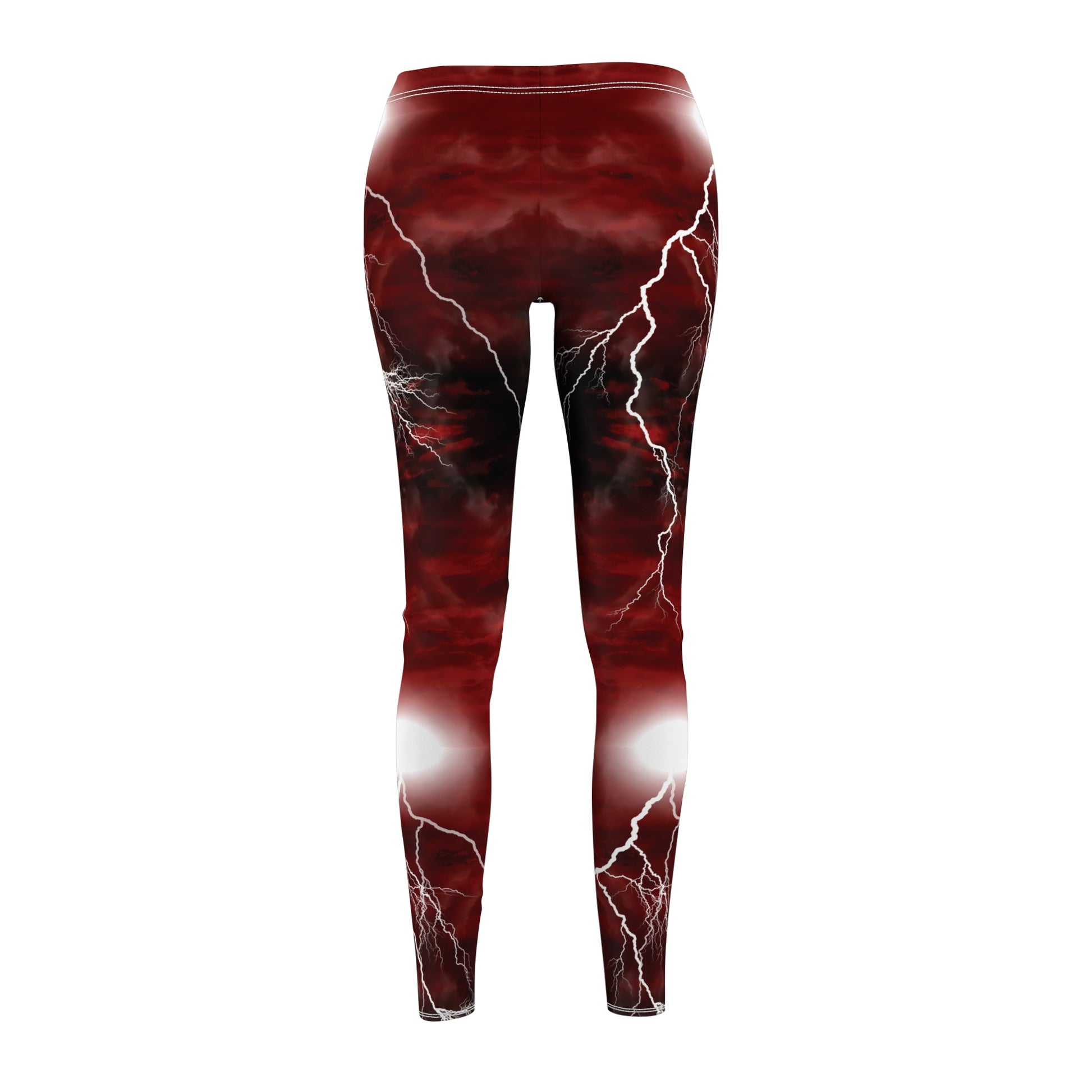 These leggings are covered in dark red clouds with white orbs and lightening bolts giving a dark gothic vibe. Makes great active wear and casual wear. Perfect for the person who loves comfortable, tight clothing and gothic style clothing.